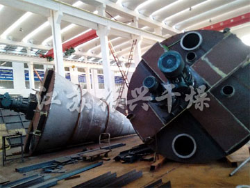 由上海某公司訂購的4臺滾筒刮板干燥機,由振興干燥車間加班制作,現已全部制作完畢,進行了預裝配和試機工作…